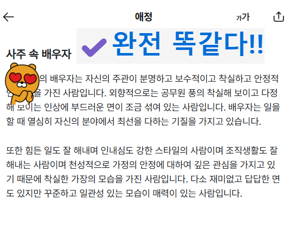 📌 궁합 – 장난으로 해봤는데, 와~ 우리 남편 특징이랑 똑같아서 깜짝 놀람!